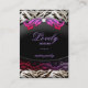 Cartão De Visita Jumbo rosa vermelha do laço da zebra da jóia da