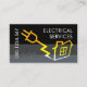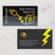 Uma tomada elétrica que é formada como uma energia de desenhar relâmpago a partir dos seus dados de contato que é mantida verticalmente à esquerda. Ao lado deste é o seu nome prestigioso com o nome comercial "SERVIÇOS ELÉTRICOS" colocado no topo. No verso, em uma cobrir, o relâmpago amarelo aciona os detalhes da sua placa ; no topo está um logotipo do medidor de potência ouro que você pode usar seguido do nome comercial, dos detalhes de contato e de um slogan para anunciar seus serviços. Uma placa de excelente para os eletricistas usarem.