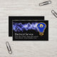 Um relâmpago elétrico azul escurece a escuridão e acende uma lâmpada elétrica em casa de ouro. Você é aquele poder que traz luz às casas. Perto da base está o nome da empresa e seus contatos. No verso, em um cobrir preto, no topo está um logotipo dourado "ícones elétricos" que você pode usar. Seguem-se o seu nome prestigiado, os contatos e uma opção de slogan para divulgar seus serviços. Um cartão criativo de excelente feito para eletricistas.