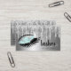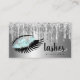 Este design de cartão de visita de lascas e sobrancelhas deslumbrantes apresenta textura metálica suave de gotejamento prateado, pestanas florais de menta e fontes elegantes de caligrafia.