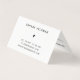 Cartão de visita moderno minimalista dobrado com a palavra "lascas" em caligrafia preta com uma batida cardíaca no final e seu nome abaixo, sobre um fundo branco. A parte de trás tem um coração junto com suas informações de contato e o dentro tem suas instruções para a assistência pós-tratamento da lash. Este cartão de visita faz o duplo dever de um técnico em barra, marketing a sua empresa e fornece aos clientes informações para manter suas lascas bonitas. NOTA: as instruções listadas são apenas para fins de exemplo. Atualize as instruções de acordo com os requisitos de assistência.