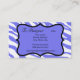 Crie um cartão de visita de na moda para uma impressão de excelente. A pele de zebra estriada colorida e a design gráfica da chita ou da pele-leopardo é uma das tendências mais quentes da arte e da design, e é extremamente popular da moda à decoração doméstica. Esta sofisticada lavanda de salgueiro e branca com zebra verde-azul-turquesa e impressão de chita é projetada para estilo. Um emblema de lavanda de periwinkle cria uma área de personalização. Isso é totalmente personalizável para personalizar e incluir seu nome, iniciais de monograma, nome comercial para suas informações de contato para sua empresa ou para um cartão de chamada pessoal.