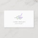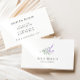 Cartão de visita elegante e minimalista com ilustração pintada manualmente das flores lavandas roxas.