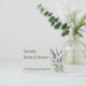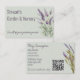 Cartão de visita duplo. Faça uma bela declaração com este cartão de visita. Decorado com lavanda de aquarela em tons verdes e roxos suaves em um fundo verde. A adição do código QR permite que os clientes acessem facilmente seu site para obter informações sobre produtos e armazenamentos.
