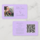 Cartão De Visita Lavender Script Business Card QR Code Service Menu