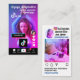 Você pode adicionar facilmente suas próprias imagens, editar filtros de fotos e remover elementos. Dependendo dos resultados finais, talvez seja necessário recortar sua imagem. Layout de vídeo TikTok na frente e um layout de posto Instagram no verso. A parte frontal do cartão de visita foi projetada para se assemelhar ao layout de um quadro de vídeo TikTok, capturando imediatamente a essência do seu conteúdo TikTok. No centro da placa, há uma imagem de vídeo retangular. Faz lembrar uma tela de vídeo do TikTok, e pode ser personalizada com uma captura de imagem atraente de um dos seus populares vídeos do Tik Tok. Esta imagem serve como uma prévia do seu conteúdo envolvente. O nome de usuário do TikTok é exibido com destaque em uma fonte em negrito e legível. Isso garante que qualquer pessoa que receba seu cartão possa facilmente localizar e seguir sua conta TikTok. Ícones do noivado. Ao redor do quadro de vídeo, vários ícones são colocados estrategicamente para encorajar o noivado com seu conteúdo TikTok. Os ícones incluem um coração para curtidas, uma bolha de comentários para comentários, uma seta de compartilhamento para compartilhamentos e um ícone de seguidor. A parte traseira do cartão de visita foi projetada para imitar o layout de um posto do Instagram, permitindo que você promova sua conta e conteúdo do Instagram. No centro do verso, há um espaço quadrado onde você pode apresentar uma imagem de chamas de atenção relacionada ao seu conteúdo do Instagram. Esta imagem deve fornecer um instantâneo do seu estilo e tema do Instagram. O identificador do Instagram é exibido de forma destacada. fazer que seja fácil para os destinatários localizar e seguir sua conta do Instagram. Abaixo da alça, há espaço para uma legenda curta e atraente. Este pode ser um slogan ou uma breve descrição que encapsula seu tema de conteúdo do Instagram. Semelhante à frente, ele tem ícones de noivado (como corações, comentários e ícones de compartilhamento) para encorajar a interação com suas postas do Instagram. Distribua esses cartões duplos em vários eventos, reuniões e encontros sociais para promover suas contas TikTok e Instagram. Encorajar os destinatários a se envolverem com seu conteúdo em ambas as plataformas. Com este cartão de visita duplo com layouts TikTok e Instagram, você terá uma ferramenta de promocional eficaz para expandir sua presença de mídia social e conectar-se a um público mais amplo em ambas as plataformas. É uma forma excelente de mostrar sua criatividade e se envolver com seguidores no TikTok e Instagram simultaneamente. Aumente a sua marca e instagram seguidores, curtidas e noivados.