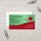 Aqui está um design de cartão de visita com um design verde moderno e uma cor vermelha de fundo que você pode personalizar online. Impresso com um símbolo gráfico ou logotipo de casa que você pode manter no lugar ou substituí-lo pelo seu próprio. Projetado para um corretor de imóveis, corretor, avaliador de casas ou agente de seguro de proprietários.