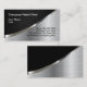 modelo de cartões de visitas legal desenhados com trabalho de arte que imita um metal prateado em ambos os lados e um pano de fundo preto texturizado que adiciona algum fator legal à design. Criados para a indústria automóvel, a construção ou serviços industriais como soldadura ou metalurgia.