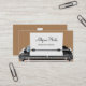 modelo de cartão de negócios de escritor freelance em um design inteligente de dois lados com seu nome e profissão exibidos na frente na página de máquina de escrever antiga e seus detalhes de contato organizados no verso com impressão de dois lados inclusos. Use nosso gráfico de máquina de escrever retrô em nossas placas ou substitua-o por seu próprio logotipo, marca ou gráfico. Projetado em estilo retrô para um escritor, autor ou editor profissional.