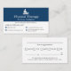 Mantenha os doentes no horário programado com este cartão de visita de aviso de consulta do escritório de fisioterapia. Apresentando um design azul marinho profissional, ele fornece espaço para o logotipo da sua clínica, nome do terapeuta, informações de contato e um rastreador de compromisso fácil de ler no verso. Perfeito para fisioterapeutas, clínicas de reabilitação e centros de bem-estar, este cartão combina um estilo limpo e moderno com função prática para ajudar os pacientes a se organizarem durante sua jornada de recuperação.