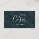 Cartão de visita de leopardo preto verde elegante com tipografia personalizável em letra de script de tendências e personalizado com seu nome, identificador de mídia social e informações de contato.