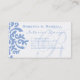 Cartão De Visita Letra azul e branca elegante R do damasco