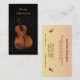 Este cartão de visita anuncia lições de violino. A parte dianteira apresenta ainda uma vida clássica de um violino velho elegante. Este instrumento gracioso é essencialmente uma caixa de madeira oca com extremidades arredondadas, dois furos graciosos de f e um centro estreito. Os quatro grupos de cordas estendem de um suporte da corda na parte inferior do corpo sobre uma ponte aumentada à extremidade do pescoço estreito, ou do fingerboard onde as quatro cordas são introduzidas em um pegbox e guardaradas lá com Pegs. Os Pegs são usados para ajustar o violino. Quando o arco é tirado através das cordas no corpo do violino produz a música incrível, mágica! Os tons marrons, quase alaranjados dourados lindos são ajustados fora pelo tecido preto gracioso de veludo. O reverso tem a maioria do texto pertinente. Todo o texto pode ser personalizado para serir sua situação pessoal.