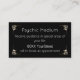 Esse cartão de visita místico e encantador personalizado apresenta um meio píquico, tema do vidente. O título Psychic é impresso em uma fonte no estilo Gótico com um design de ouro brilhante. Um nome de exemplo é impresso na parte superior que você pode personalizar com seu próprio nome ou texto personalizado. As frases "Fortune Telling" e "Palm Reading" são impressas em ouro correspondente, através de faixas de estilo medieval. Duas velas tremendas são impressas em cada canto inferior. As informações de contato e uma lista de serviços psíquicos são impressas na parte traseira da cartão de visita.