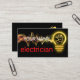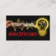 Cover features an electrical lightning charging up a gold letter-e home lightbulb. Inside the wave of power is your prestigious name. Near the base of the card is the job title-business name "electrician" which you can change.