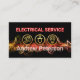 Cover features a lightning that zaps across the card's face to power up your prestigious name. Just above this are gold electrical icons alongside the business name "ELECTRICAL SERVICE" which you can change.