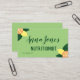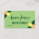 Cartão de negócios simples, elegante e moderno, com limões ilustrados e laranjas com folhas verdes espalhadas em fundo verde.