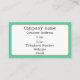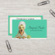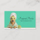 Um cartão de visita divertido e simples, com um cão embrulhado numa toalha, vestindo uma máscara ocular, com as suas patas estendidas prontas para serem mimadas. Apresentado sobre um fundo verde teal. Há muito espaço para adicionar seus detalhes de negócios, conforme desejar.