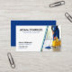 Um layout limpo e moderno com uma foto de um zelador com um esfregão e balde, em conjunto com simples detalhes de contato e uma lista de serviço azul no verso. Concebidos para limpadores profissionais e serviços de limpeza.