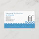Um simples cartão de visita para limpeza e serviços de piscinas (reparação, manutenção, construção, aberturas e fechos, equipamentos, instrutor de natação e outros). Ele vem com contato de cheio, lista de serviços e endereço de site na parte traseira, tudo em cores azul e branca!