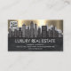 Cartão De Visita Linha Skyline da Cidade | Mármore Dourado metálico