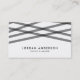 cartão de visita de na moda com a sobreposição de linhas de cinzas escuras e um lado preto traseiro. É ideal para profissões como planejador de eventos, escritor, freelancer, estilista, consultor, etc. Personalize-o substituindo o texto do marcador de posição. Para obter mais opções, como alterar a fonte e seu tamanho/cor ou o espaçamento entre letras, clique no botão "Personalizar". *Observe que a Marca d'água do Zazzle que aparece na visualização de zoom NÃO aparecerá no produto impresso final. © Rosewood e Citrus