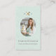Mostre seu negócio de padaria ou panificação caseira com estilo usando este Modelo de Cartão de Visita de Foto de Padaria Elegante Chic da ©Moodthology Papery. A frente apresenta um fundo texturizado de linho verde menta falso com uma moldura de foto rendilhada divertida - perfeita para o retrato do seu negócio. Um batedeira de ouro refinada e um gráfico de rolo de massa cor-de-rosa, junto com o seu monograma personalizado, adicionam um toque de sofisticação. Personalize facilmente com o nome e slogan do seu negócio. O verso exibe seus detalhes de contato em um layout moderno e limpo e inclui espaço para três fotos adicionais para destacar suas deliciosas criações. Ideal para padeiros caseiros, padarias, cafés ou restaurantes que buscam causar uma impressão memorável e profissional.