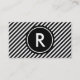 Cartão De Visita Listras preto e branco diagonais com monograma