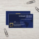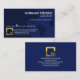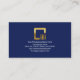 No verso, num cobrir azul mais claro, o logotipo dourado está no topo, seguido do seu prestígio, dos seus dados de contato e de uma legenda de slogan para divulgar os seus serviços.