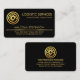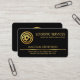 Um cobrir preto é acentuado por uma linha falsa de ouro perto da base da placa. ; Andar nesta linha de sucesso dourada é o seu nome prestigiado e detalhes de contato. Perto do topo está o logotipo da jante de pneu dourado (globo) que você pode usar ao lado do nome comercial e de uma legenda de slogan que você pode mudar. No verso, o logótipo dourado está no topo, seguido do seu nome prestigiado e dos contatos. Todas as letras estão em ouro falso. Um design profissional para todos, especialmente para as empresas de transporte. #logística #transporte e logística #fornecedorcadeia de suprimentos #suicainmanagement #caminhoneiro #caminhoneiro #transporte #entrega #caminhonete #carga #pneu #zazzlemade