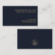Faça uma impressão duradoura com nossos Cartões de visitas de logotipo clássico profissional simples com tipografia tradicional em um rico fundo azul marinho escuro. A parte traseira contém um emblema profissional de selo dourado que pode ser atualizado com o seu logotipo. Perfeito para qualquer profissional de negócios que queira criar uma impressão duradoura.