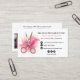 Faça uma primeira impressão de na moda com este moderno cartão de visita de cabeleireiro, com um fundo de aquarela cor-de-rosa-chic e uma ilustração de tesoura-de-ouro. Projetado para cabeleireiros, donos de salões e profissionais de beleza, este layout elegante inclui detalhes de contato, identificadores de mídias sociais e um código QR para fácil reserva. A parte traseira mostra as transformações do cliente ou as suas fotos, fazer-as perfeitas para listas de penteados especializadas em cortes, cores, extensões e estilos. Uma escolha sofisticada, mas tendenciosa para qualquer profissional de cabelos.