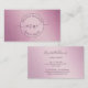 Design de círculo de logotipo simples e minimalista sobre fundo metálico rosa. O layout inclui um círculo de logotipo para um nome, iniciais e título profissional na frente, enquanto o verso oferece uma área personalizável para informações de contato, links de mídia social. Perfeito para: treinadores de bem-estar, treinadores de vida, instrutores de yoga, viagem consultores, terapeutas, fotógrafos, artistas, curandeiros holísticos, planejadores de casamento, escritores, designers de interiores e outros profissionais centrados no coração.