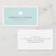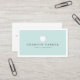 Cartões de visitas dentárias com um logotipo de dente branco e seu nome e título em cinzas escuras em um fundo azul aqua claro com uma borda branca na frente. Retorno branco com campos de modelo para suas informações de contato