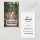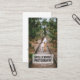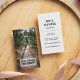 Cartões de visitas elegantes para fotógrafos mostram seu melhor trabalho em formato vertical com seu nome ou nome comercial exibido em letras negras modernas em uma camada retangular de crachá de logotipo. Personalize o lado inverso com as informações de contato do seu cheio, combinando a tipografia negra moderna.