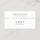 Texto preto, fundo branco, logotipo personalizado, um código QR, sotaque de stripe dourada, design de cartão de visita minimalista moderno.