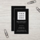 Cartão de visita simples, preto e branco, com o logotipo personalizado, informações comerciais e código QR do site (no verso). Dica: você pode alterar as cores do texto e do plano de fundo para combinar o logotipo e as cores da marca.