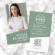 Logotipo de código QR de foto Contemporâneo Verde Sage Cartão de visita Vertical. Este cartão de visita vertical contemporâneo foi projetado para profissionais corporativos, proprietários de pequenas empresas, freelancers e consultores que valorizam a design moderna e limpa. A frente apresenta um fundo verde macio com fontes brancas nítidas, mostrando sua foto, logotipo da empresa, nome e título ou nome comercial em um layout ousado e profissional. As costas continuam a sábio e a estética branca com seus detalhes de contato, um código QR digitalizável para conexões instantâneas e ícones minimalistas das mídias sociais, aliados à frase "Conecte-se conosco!" para um toque elegante e acessível. O suave contraste entre verde-sábio e branco, aliado à tipografia limpa, dá a este cartão um estilo refinado e versátil, perfeito para qualquer marca que queira deixar uma forte impressão. Personalize o seu hoje para se destacar com confiança e estilo!