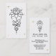 O símbolo influenciado budista faz parte do design neste cartão de visita moderno que tem o símbolo LOTUS / WATER LILY como parte do símbolo NIRVANA BUDDHIST desenhado a preto.