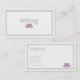A business card design featuring a lotus flower in soft watercolor hues of pink and lavender, suggesting relaxation and tranquility. A thin border of a darker teal frames the card, providing a polished and professional finish.
