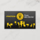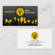 Em um apagão urbano, uma lua de bolbo amarela dá alivio ao bloco de construção amarelo, fornecendo eletricidade. Repara que apenas um eletricista pode dar. À esquerda da lua de bulbo está o título de emprego "eletricista", você pode mudar o título do trabalho para atender às suas necessidades. Para o lado oposto é o contato telefônico.
