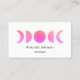 Um cartão de visita com fases da lua com gradiente rosa e fundo branco. Perfeito para um astrologista ou instrutor de ioga ou outro curador holístico.