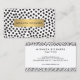 Design de cartão de visita de chic elegante com um padrão de pontos pretos pintados à mão com uma placa metálica falsa de ouro para seu nome ou nome comercial para uma estética luxuosa e tendência. Entre em contato com o designer se precisar de ajuda com nomes maiores ou layouts alternativos. Projetada pela 1201AM, uma agência de design de boutique especializada em design de logotipos e momentos de marca para empresas de na moda. Para pedidos ou perguntas de design, contacte-nos em www.1201am.com. © 1201AM CREATIVE