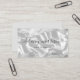 Esta elegante cartão de visita apresenta uma imagem de seda branca, enquadrada no topo e no fundo por cinzas e bordas brancas de aquarela, aparadas com brilho cinza-prateado brilhante. Personalize-o com seu nome em um script de escrita manual fora de preto e suas informações comerciais em fontes sans serif. O inverso é uma sombra coordenadora de cinzas pálidas.