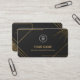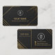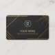A premium luxury business card template featuring an elegant matte black background with refined metallic gold accents and geometric patterns. This editable design allows full customization — you can easily change the name, logo, and all contact details to match your brand identity. Perfect for professionals, entrepreneurs, and high-end brands looking for a sophisticated and modern card layout.