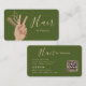 Make a lasting impression with this luxury hairstylist business card, crafted for beauty professionals who value elegance, confidence, and modern branding. Designed with a sleek moss green background, refined rose-gold typography, and a stylish hand illustration holding professional scissors and a comb, this card instantly communicates creativity and expertise.