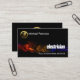No escuro da noite, um raio elétrico se estende através da face da carta. Andar neste relâmpago é o título "eletricista" ao lado dos contatos perto da base. No canto superior está um logotipo de eletrodoméstico dourado que você pode usar com seu nome prestigiado ao lado dele.