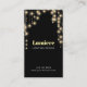 Luzes Douradas de cordas se penduram no topo deste cartão de visita preto versátil. Excelente para um designer de iluminação, planejador de eventos ou até mesmo um salão de beleza. Disponível com produtos correspondentes.