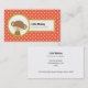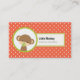 Cartões de visitas profissionais. Na frente está um macaco bebê bonitinho com um pacificador no círculo verde-dentro da boca. O fundo é um padrão de bolinhas laranja e branca.