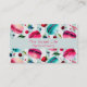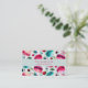 Modelo de cartão de negócios com aspecto gráfico com uma design de aquarela de macarões franceses doces e deliciosos a caírem por toda a parte. Bonito aquarelas - cor-de-rosa, vermelha e verde-lacre. Morangos aleatórios flutuando por aí também. Como morangos, cerejas e mirtilos. Fresco e delicioso. Colocado sobre um fundo de bolinhas verde. Perfeito para padeiros, padarias, pastelarias, pattiseriados, etc... Uma faixa verde-menta através do centro para uma leitura facilmente legível dos detalhes comerciais.